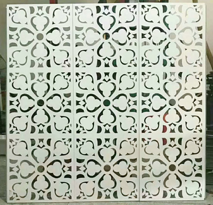 2、鏤空雕花鋁板采用氟碳噴涂,不受紫外線、濕度、氣溫和大氣腐蝕,永不褪色;板體輕巧、安裝結構簡便,更具有良好的抗彎曲強度及優良的抗風壓性能。
