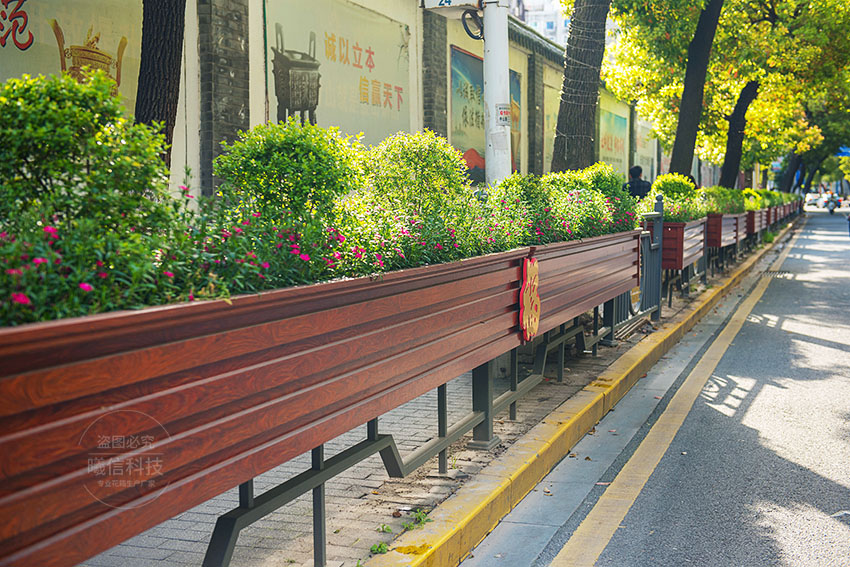 美觀和實用兼備,城市道路花箱中不可多得的一款??梢哉f,在護欄的基礎上,添加了花箱的功能。
