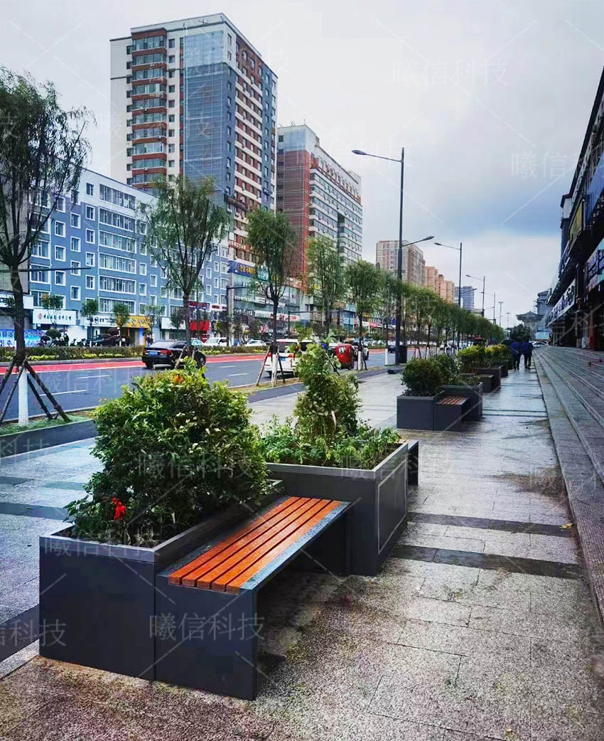 選擇金屬材質(zhì)的公園椅則能避免這一情況的出現(xiàn)。這款不銹鋼座椅,具有高強(qiáng)度高硬度高承重的特點(diǎn),不懼雨水沖刷,可使用十年以上,易于清洗。且結(jié)合了花箱,同時(shí)滿足了道路綠化的要求。