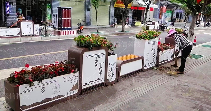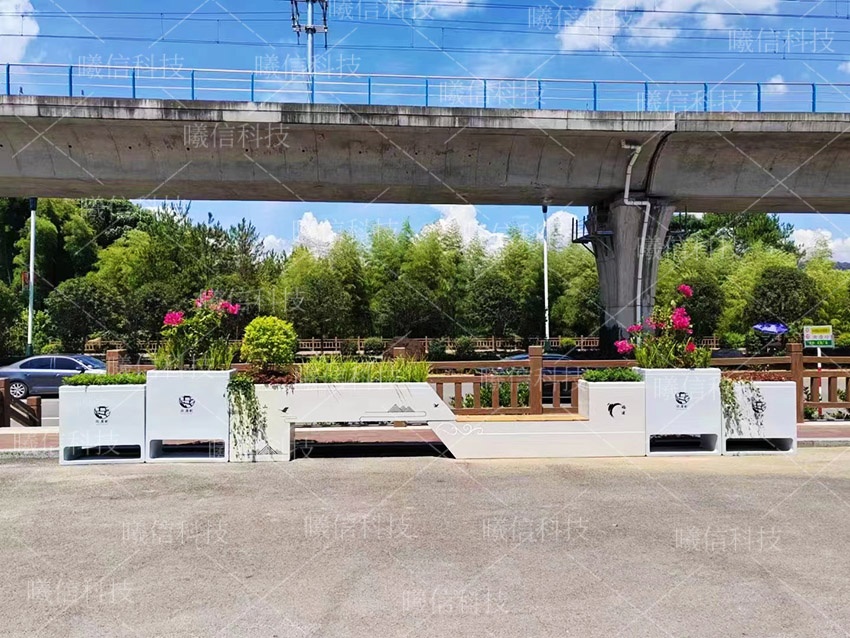 選擇金屬材質的公園椅則能避免這一情況的出現。這款不銹鋼座椅,具有高強度高硬度高承重的特點,不懼雨水沖刷,可使用十年以上,易于清洗。且結合了花箱,同時滿足了道路綠化的要求。